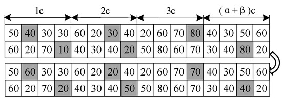 Step 1: The chromosomal code. Since the solutions of the model are all positive integers, we adopt natural number coding to represent chromosomes instead of decision variable. Assume that the number of mobile emergency centers in the mobile emergency vehicle scheduling system is , and the number of demand points is , then the number of optimal paths between the mobile emergency centers and demand points is . Supposing that all the disaster areas need some kind of emergency materials or emergency services to different degrees, the chromosome coding length can be determined as . Here, denotes the number of emergency materials involved, and denotes the type of emergency rescue services. Correspondingly, the code level is related to the name of each demand point, and the code value is related to the number of materials or rescue services.