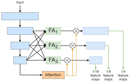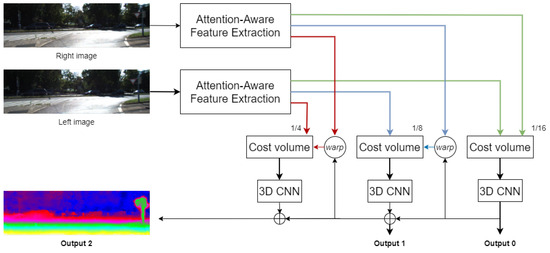 The authors of [12] proposed a feature extractor with an attention-aware module to obtain multistage feature maps from stereo images. Figure 2 depicts the architecture of the feature extractor, which consists of an efficient backbone, an attention module, and three feature aggregation modules.