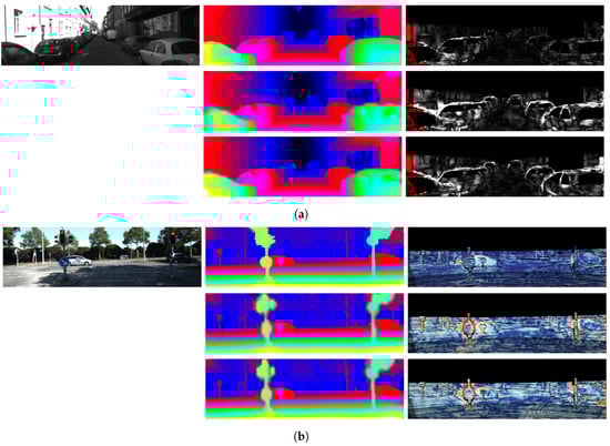 - Mayer, N.; Ilg, E.; Häusser, P.; Fischer, P.; Cremers, D.; Dosovitskiy, A.; Brox, T. A Large Dataset to Train Convolutional Networks for Disparity, Optical Flow, and Scene Flow Estimation. In Proceedings of the IEEE International Conference on Computer Vision and Pattern Recognition (CVPR), Las Vegas, NV, USA, 27–30 June 2016. [Google Scholar]