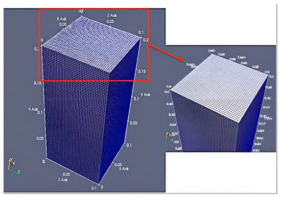 Figure 7 shows a carefully selected structured grid with 128,000 hexahedral cells generated using the blockMesh tool in OpenFOAM. This image shows the sensitivity analysis performed for the simulations and illustrates the influence and impact of the selected grid structure.
