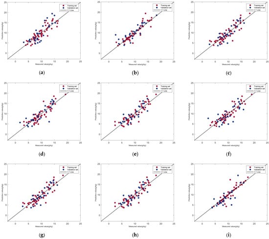 SOM fitting accuracy maps based on different spectral transformations and MPARF models: (a) N-MPARF, (b) FD-MPARF, (c) SD-MPARF, (d) RFD-MPARF, (e) RSD-MPARF, (f) LRFD-MPARF, (g) LRSD-MPARF, (h) RLFD-MPARF, and (i) RLSD-MPARF.