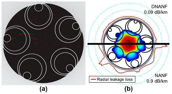 - Belardi, W.; Knight, J.C. Negative curvature fibers with reduced leakage loss. In Proceedings of the OFC 2014, San Francisco, CA, USA, 9–13 March 2014; Th2A.45. ISBN 978-1-55752-993-0. [Google Scholar]