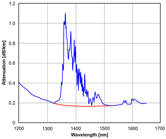 A fragmented transmission spectrum does not affect transmission at one or few wavelengths, including low-capacity DWDM links [22], but spectrally incompatible fibers cannot be spliced into a joint optical path, e.g., during the expansion of an existing network. Large-core HC-PBGF fibers are not suitable for high capacity DWDM networks, where a low loss at least in a full C-band (≈1528–1565 nm) is required.