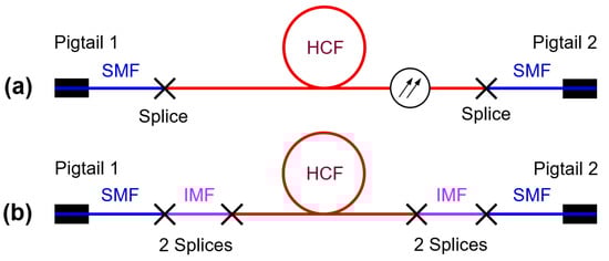 - Song, N.; Wua, C.; Luo, W.; Zhang, Z.; Li, W. High strength fusion splicing of hollow core photonic crystal fiber and single-mode fiber by large offset reheating. Opt. Fiber Technol. 2016, 32, 106–110. [Google Scholar] [CrossRef]