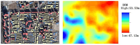 Recently, coupled with climate change and human activities, the frequency and intensity of extreme rainfall have increased, leading to mountain flooding and urban waterlogging. Flooding and waterlogging disasters not only cause devastating damage to infrastructure, but also pose great threats and damage to people’s lives and safety. When a flood or storm occurs, people usually flee to a high place to avoid risk. Through the proposed method, we can quickly distinguish the buildings that can avoid disaster (tall buildings) and the buildings that may be flooded (low buildings), assess the survival environment when the flood occurs, and provide technical support for emergency rescue. As shown in Figure 11 below, by combining the building height level and DEM in the Beijing scene, we could estimate that the people living in the low buildings of the low DEM areas (orange to red in the DEM figure) are at a relatively high risk of being inundated by urban waterlogging.