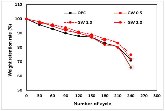 Weight retention ratio of waste glass fiber-reinforced concrete.