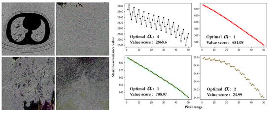 Looking at the graphs in Figure 4 and Figure 5, in the case of cliplimit, it can be seen that the variance value converges in a certain range, and in the case of α (additional brightness), a downward graph is shown. This means that significant computational overhead can occur if an unnecessary iterative process is performed in the process of extracting the optimal value [52].