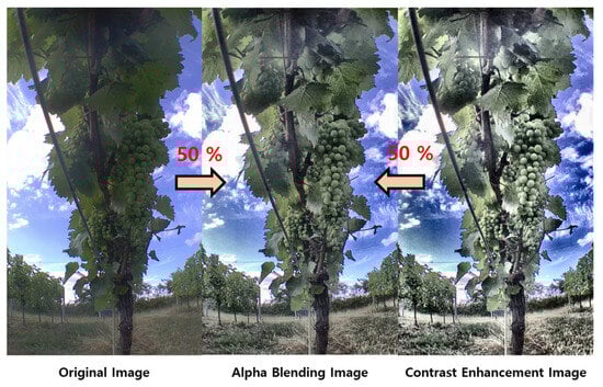 In this paper, alpha blending was applied to the original image and the contrast-enhanced image by specifying a ratio of 0.5, and through Figure 6 it can be seen with the naked eye that the degree of image damage is reduced when alpha blending is applied.