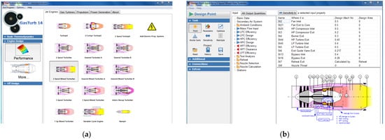 (a) Graphical interface of GasTurb 14. (b) Design point calculation in GasTurb.