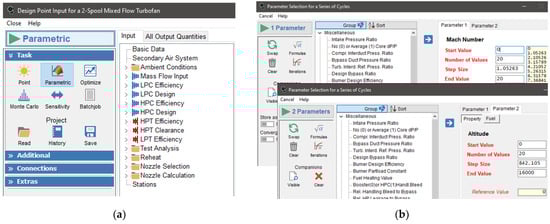 (a) Parametric analysis in GasTurb 14. (b) Parameter selection for analysis.