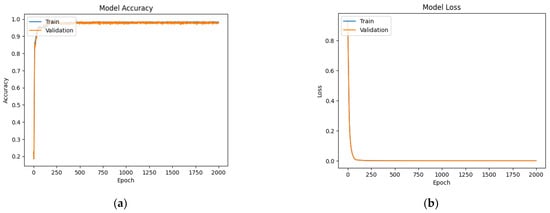The model accuracy and model loss function for the deep neural network model is shown in Figure 14. The model accuracy for the training and validation data was greater than 95%.