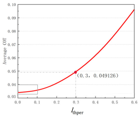Figure 10 shows the variation in the full-range energy consumption when varies in the range of [0, 0.6]. The increases with an increase in . of 0.049126 is observed at = 0.3. When varies in the range [0, 0.1], consistently remains at a low level. It can be observed that the bipedal robot exhibits higher average efficiency in walking when the distance between the center of mass of the hip and the leg is closer.