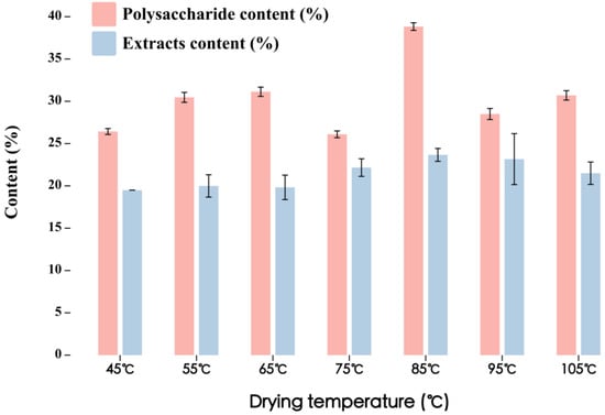 The polysaccharide and extract contents of fresh Lilium S9 at different drying temperatures.