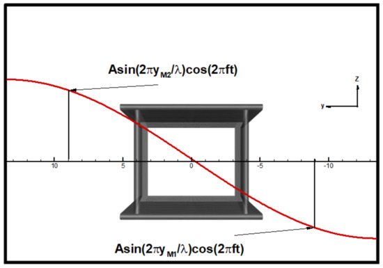 A diagram illustrating the pressure standing wave is presented in Figure 2. It can be seen that the waveform has a sinusoidal pattern with an anti-symmetric distribution along the y-axis.