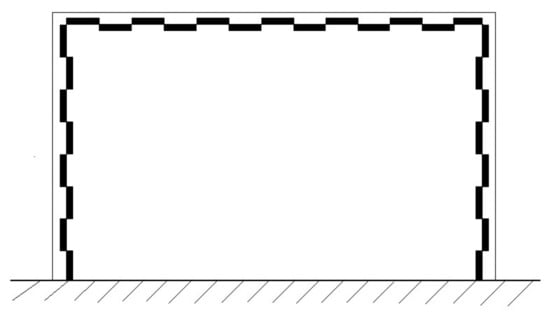 Researchers at NASA Langley Research Center designed six different configurations of nozzle spoilers for a 4 m × 7 m open-jet wind tunnel [16] and used hot-wire anemometers to measure velocity pulsations at the jet center to assess their effectiveness in mitigating flow pulsations. The results showed that the alternating arrangement of triangular spoilers had superior effectiveness, as shown in Figure 7.