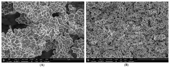 The results of the study of particle sizes in SEM analysis are consistent with the results of the study of porous structures, since the particles obtained at 1400 °C, which are smaller in size, have a larger specific surface area than those obtained at lower temperatures.