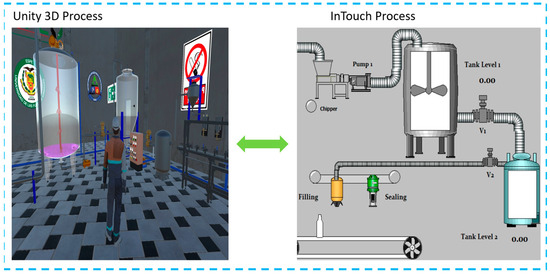 For this reason, the development of virtual environments focused on learning processes known as serious gaming allows people to work with video game environments specifically designed for the purpose of teaching, training, or transmitting information effectively while providing a playful and attractive experience [21,22]. Such environments may include the development of specific skills, acquisition of knowledge, improvement of decision making, promotion of teamwork, implementation of control algorithms, control of programmable automation, and manipulation of actuators and transducers. Serious games focus on providing immediate feedback to the user. This allows the user to learn from mistakes and continually improve their skills. Serious games in the educational field allow engineering students to simulate industrial processes since there is a lack of equipment in higher education institutes [23,24]. Furthermore, in industries, virtualization provides training to workers. It is important to optimize resources and reduce risks of possible failures, since companies cannot stop when they are in operation because such a stoppage represents a loss of money for the industry [25,26].