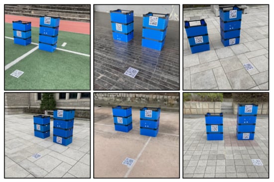 In this study, we generated a QR code image dataset for training the segmentation model. Furthermore, we generated the video dataset for performance evaluation of the proposed framework. Section 4.1 describes the generated datasets. Section 4.2 presents the results for the decoding test of the QR code detected by the trained segmentation model. Section 4.3 evaluates and compares the position estimation performance of the proposed framework using the video dataset generated with ground QR codes and inventory QR codes in real-world environments.