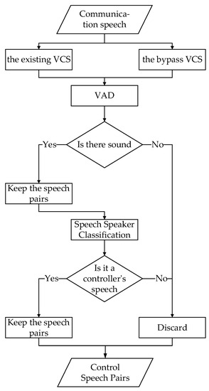 This model aimed to evaluate the quality of air traffic control speech, so it was necessary to construct a real air traffic control speech database. We collected real air traffic control speech from the air traffic control agency’s voice communication system (VCS). The speech was encoded using Pulse Code Modulation (PCM). These speech samples covered a wide range of acoustic conditions, including different genders (male/female), various sources of noise (ground noise, aircraft noise, weather noise, etc.), different speaking rates (slow/medium/fast), and different scenarios (ground, tower, approach, etc.). To create a database for speech quality assessment in the air traffic control domain, which includes the air traffic control speech and their corresponding real MOS values, we employed various strategies. These included voice activity detection (VAD) to extract valid audio segments, automatic speaker recognition, and manual verification. Finally, we annotated the air traffic control speech with the real MOS values. The specific process is outlined as follows.