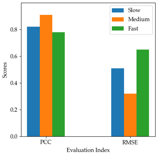 As shown in Figure 12, we found that the performance of the proposed method significantly declines when the speech rate is fast. The underlying reason can be attributed to the fact that, for the same air traffic control speech under identical conditions, as the speech rate increases, the spectrogram of the speech shows dimension reduction. This results in the feature extraction module of the proposed method capturing more redundant information from the spectrogram, leading to deviations in the evaluation of air traffic control speech quality.