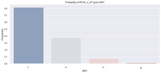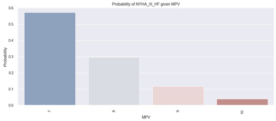 The results obtained based on the above-mentioned mathematical formula are illustrated graphically in the figure below (Figure 6), in which we can observe that patients with a low MPV had a higher probability of having class II NYHA HF.