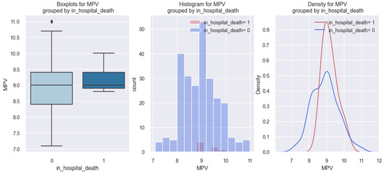 The above-mentioned results are illustrated in all three graphs represented in the figure below (Figure 16), which imply the same conclusion, according to which there is no clear relationship between HF patients who died in hospital and MPV value. In the first graph of the figure, we observe that there was no significant difference in the MPV value between HF patients who died in the hospital compared to those who did not die in the hospital. The same information can be deduced from the second and third graphs.