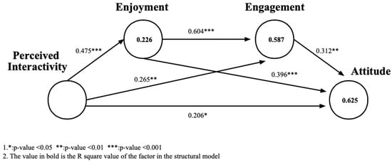 In addition to direct effects, perceived interactivity may influence user engagement through enjoyment, which, in turn, affects user attitudes toward the news.