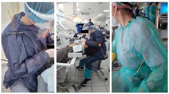 In all settings, a full-coverage service of the dental units was performed before the measurements. All the equipment in the measurement settings were under good working conditions. The cutting burs and diamond points used in the handpieces were those used by the operators during normal clinical practice, and handpieces were maintained according to evidence-based protocols [56]. The pressure for compressed air within the clinics was set at the maximum permissible values as designated by the manufacturers while being compatible with the values prescribed for the respective handpieces.