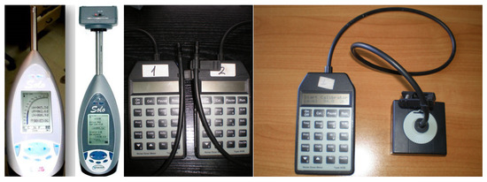For the estimation of noise levels, we followed the measurement methodology defined by P.D. 149/2006. The sound level meters, and noise dosimeters followed the specifications of IEC 804—IEC 651 for the work-related noise measurements. The sound level meters operated in fast mode (time weighting) using A and C weighting filters and recorded noise statistics every minute. From the logged parameters, Leq was analyzed (the equivalent continuous sound level represents the total noise exposure for the period of interest or an energy average noise level). Simultaneously, the spectrum analysis was recorded.