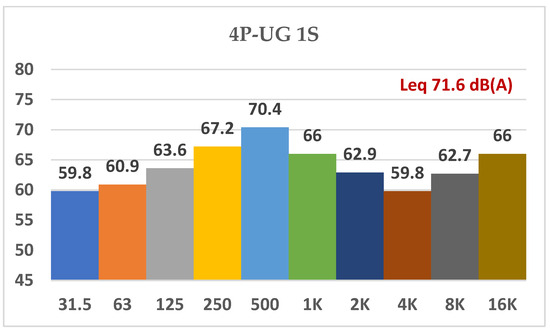 Figure 4. Spectrum analysis of workplace noise at position 4P (center of the UG1).