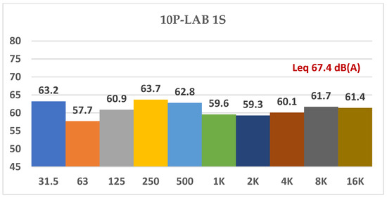 Figure 9. Spectrum analysis of workplace noise at position 10P (center of LAB 1S).