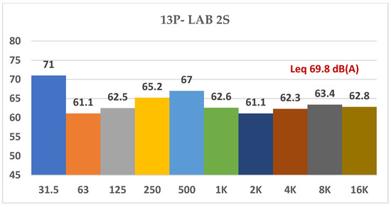 Figure 10. Spectrum analysis of workplace noise at position 13P (center of LAB 2S).