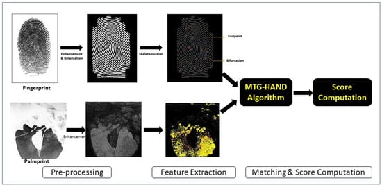 51. Hernandez-Palancar, J.; Munoz-Briseno, A.; Gago-Alonso, A. Using a triangular matching approach for latent fingerprint and palmprint identification. Int. J. Pattern Recognit. Artif. Intell. 2014, 28, 1460004. [Google Scholar] [CrossRef]