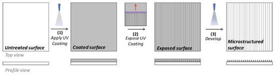 45. Bilinsky, H.C.; Builth-Williams, J.; Quinn, M. Curing Functional Properties into UV Coatings: Direct Contactless Microfabrication of Drag Reducing, Anti-Bacterial, Anti-Fouling and Optical Microstructures. In Proceedings of the adTech NA Conference, Milano, Italy, 27–28 May 2020. [Google Scholar]