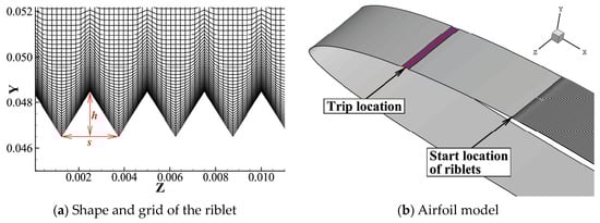 129. Zhang, Y.; Chen, H.; Fu, S.; Dong, W. Numerical Study of an Airfoil with Riblets Installed Based on Large Eddy Simulation. Aerosp. Sci. Technol. 2018, 78, 661–670. [Google Scholar] [CrossRef]