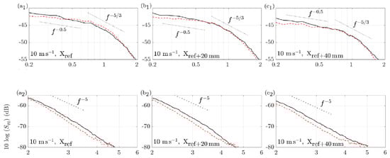 In the context of wall pressure fluctuation measurements, the size of the microphone diaphragm must be considered due to the size of the turbulent eddies within the boundary layer [65,98]. Pressure sensors should be small enough to resolve small scales of turbulent structures. As an estimation of the sensor’s size, these should be in the order of a tenth of the viscous lengths, which is roughly estimated by the value of Reynolds number based on the momentum thickness. As an example, increasing the Reynolds number by a factor of ten would change the Kolmogorov scales from millimeters to micrometers [98].