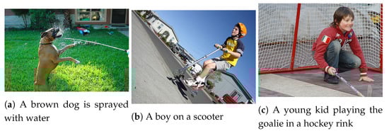 - Sharma, P.; Ding, N.; Goodman, S.; Soricut, R. Conceptual captions: A cleaned, hypernymed, image alt-text dataset for automatic image captioning. In Proceedings of the 56th Annual Meeting of the Association for Computational Linguistics (Volume 1: Long Papers), Melbourne, Australia, 15–20 July 2018; pp. 2556–2565. [Google Scholar]