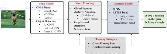 - Hejazi, H.; Shaalan, K. Deep Learning for Arabic Image Captioning: A Comparative Study of Main Factors and Preprocessing Recommendations. Int. J. Adv. Comput. Sci. Appl. 2021, 12. [Google Scholar] [CrossRef]