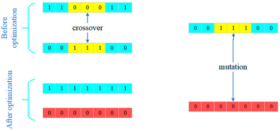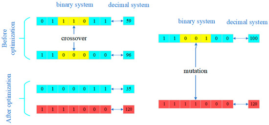 Error 2: According to binary encoding rules, if the parameter range to be optimized is within the range of 1–100, seven bits are required to represent the parameter. However, after the crossover or mutation operations, the optimized parameter may exceed the upper limit, as shown in Figure 9.