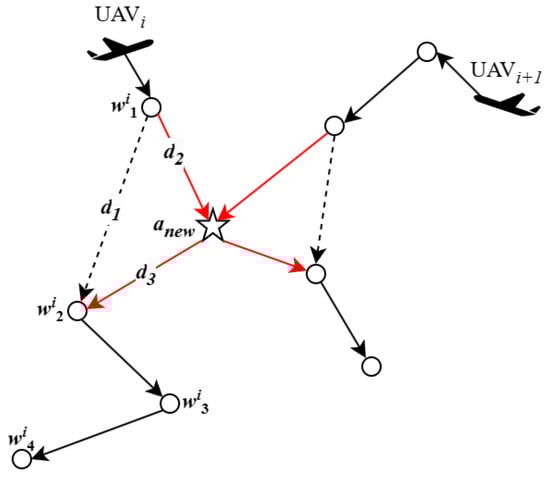 After the insertion order has been determined, the new task areas will be inserted into the unexecuted reconnaissance sequence one by one, and the new task area currently inserted is denoted as . The detailed steps of the new task area insertion process are presented as follows: