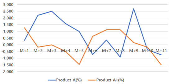 Product-A1 is a derivative of product-A, and the production volumes of products A and A1 are different: high volume and low volume. We calculated the production improvement rate of products A and A1 and calculated the production improvement rate among the derived products using the same method as the one used in this paper.