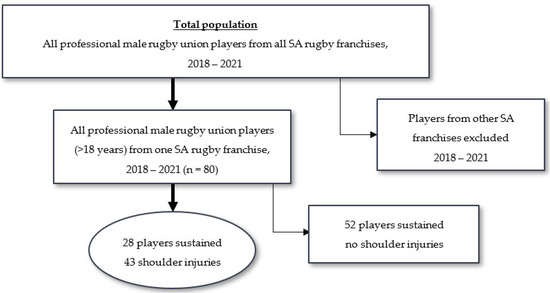 This prospective study was implemented to record data at single time-points across four seasons. Before the onset of this study, the Ethics Committee at the University of Pretoria approved the study (REC 531/2020) with the permission of the Director of Rugby. The team physicians reviewed the medical files and the recorded GPS data of all players that sustained a shoulder injury during the period 2018–2021. The team’s sports scientist assisted in analysing the data.