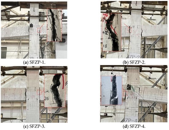Failure pattern of assembled beam–column connections. (a) SFZP-1. (b) SFZP-2. (c) SFZP-3. (d) SFZP-4.