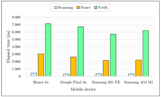 Performance of the implemented application when verifying a sample privacy-preserving digital vaccine certificate according to Table 2. The measurement results are the average of the elapsed time for 5 measurements.