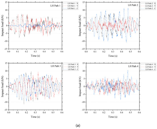 Calculated impact load profile for each path of the vibro-ripper. (a) LH path; (b) RH path.