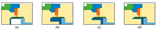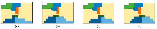 Figure 9. Simulated configurations: shaft shoulder designs. (a) shoulder_air_short. (b) shoulder_air_long. (c) shoulder_oil_short. (d) shoulder_oil_long.