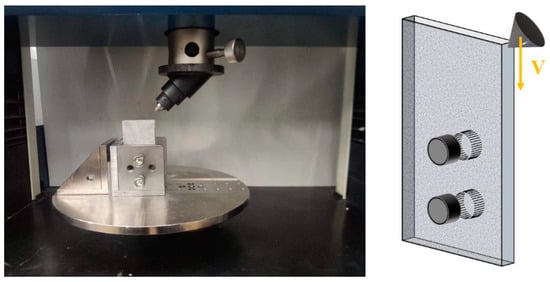 The uniaxial pulling and pressing tester, as seen in Figure 2 below, served as the basis for the design of the rock-cutting tool. The beam of the tester supplied the loading route and speed for the cutting experiment. A fixture held the thin rock sample to the chassis, and the cutting tool was a shovel-shaped tooth with a 60° angle. The uniaxial pulling and pushing tester placed restrictions on the data collection technique, allowing for the collection of just the cutting force in one direction.