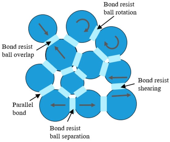Schematic Diagram of Parallel Bonding. Note: The arrows within the sphere depict the trajectory of its motion, the following figure is the same.