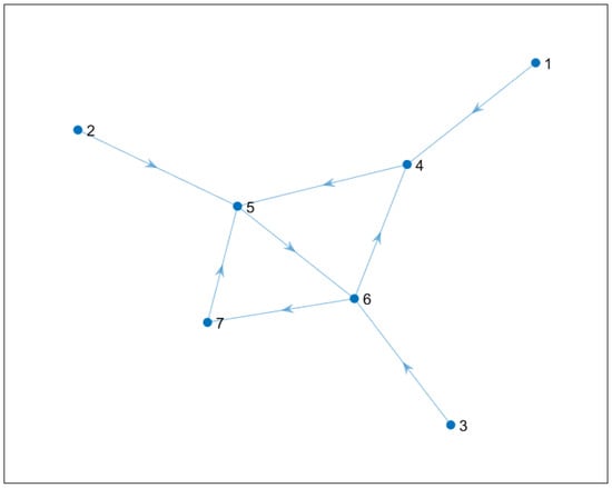 ([33]). According to Assumption 1, each member of is non-negative, and positive real components can be found in each ’s eigenvalue. In addition, the matrix has row sums of 1.