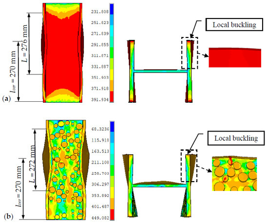 - Kong, W.; Lin, Q.; Zhang, X.; Chen, Y. Test on axial compression performance of perforated welded H-shaped steel stub column. J. Constr. Steel Res. 2022, 191, 107191. [Google Scholar] [CrossRef]